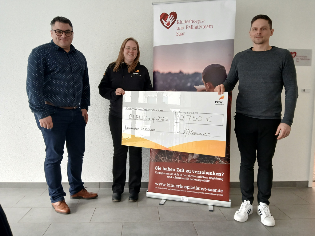 Anlässlich des firmenweiten EEW-Laufs 2025 sammelte die Firma EEW Spendengelder zugunsten des Kinderhospiz- und Palliativteams Saar. Durch das Engagement der Mitarbeitenden und die Aktion im Rahmen des gemeinsamen Laufs kam eine Spendensumme von 2.750 Euro zusammen.